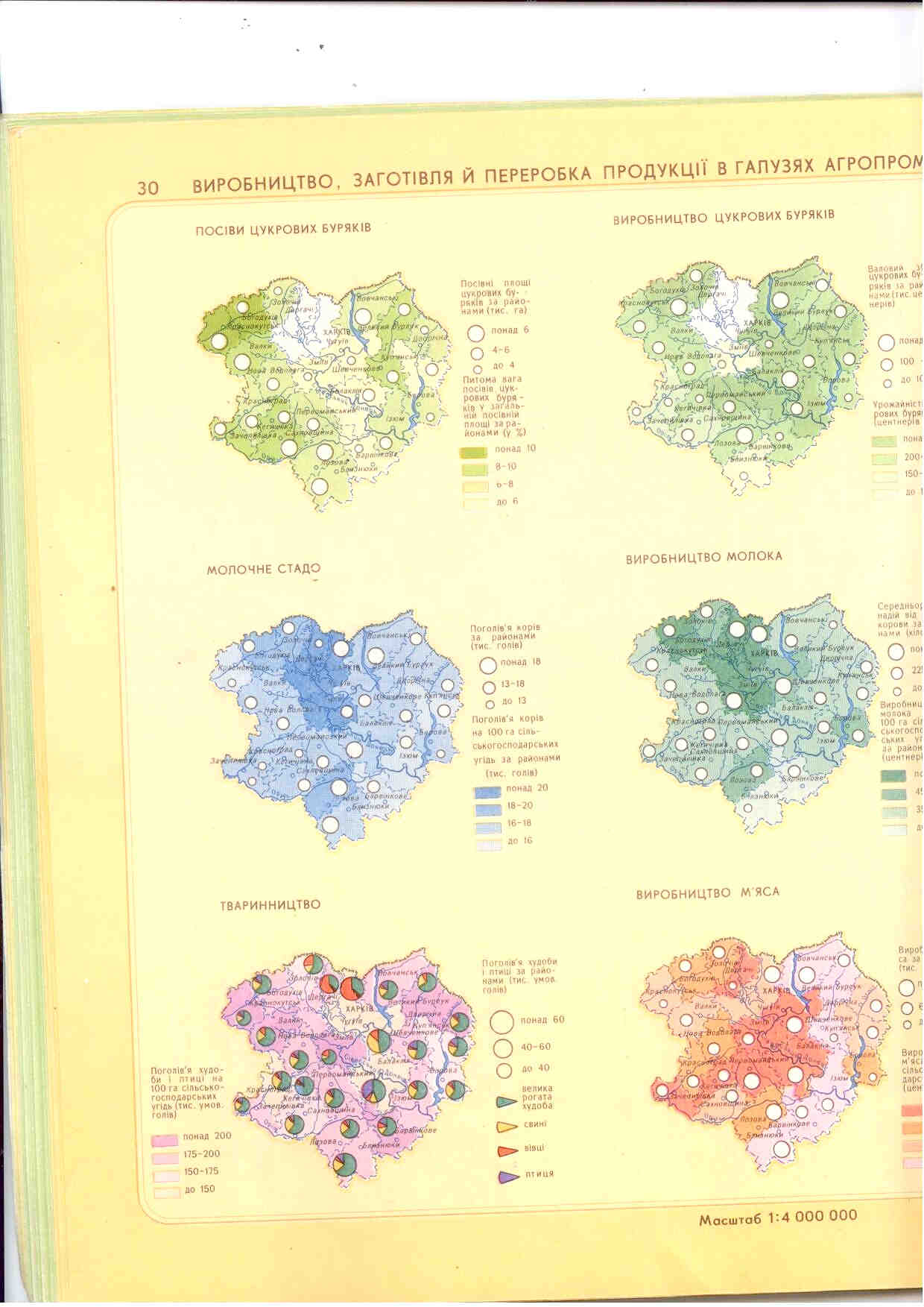 Виробництво, заготівля й переробка продукції в галузях агропроми-слового комплексу (серія карт).