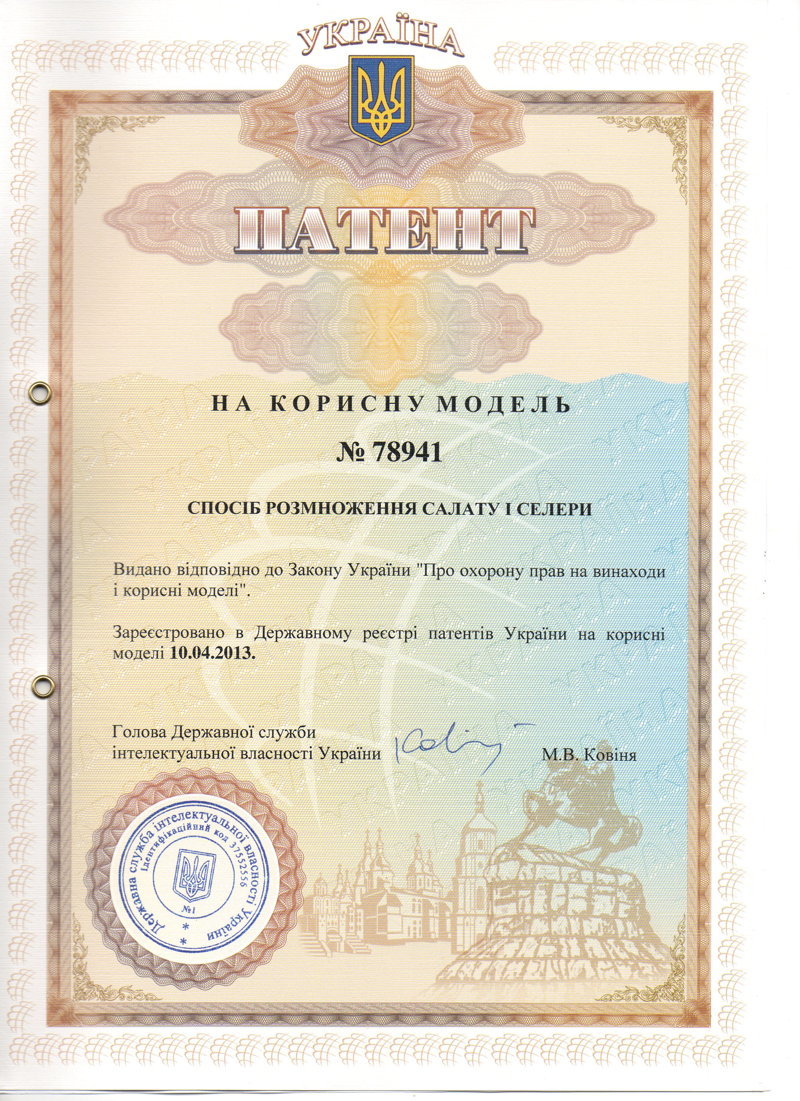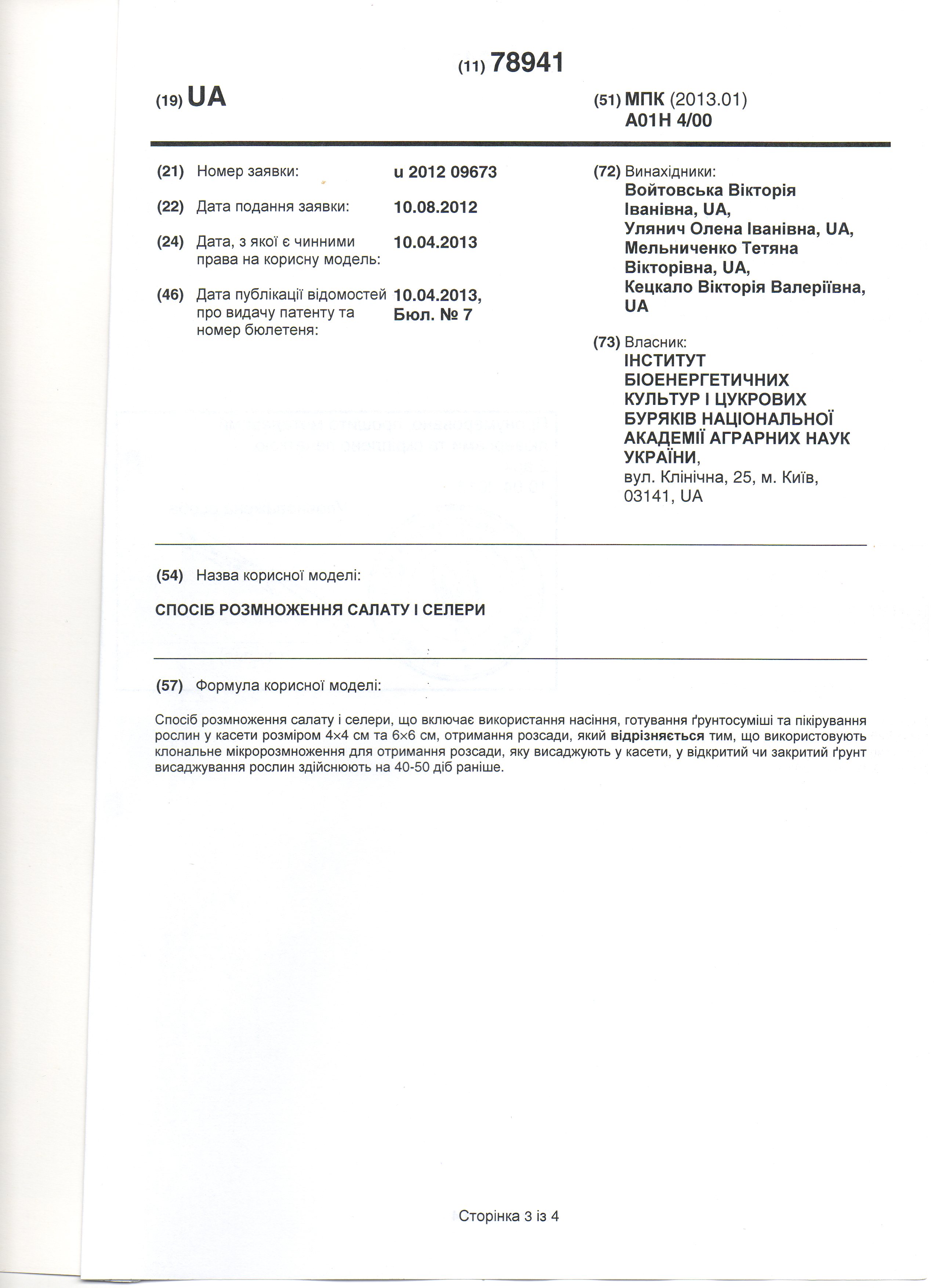 Патент на корисну модель № 78941. Спосіб розмноження салату і селери.